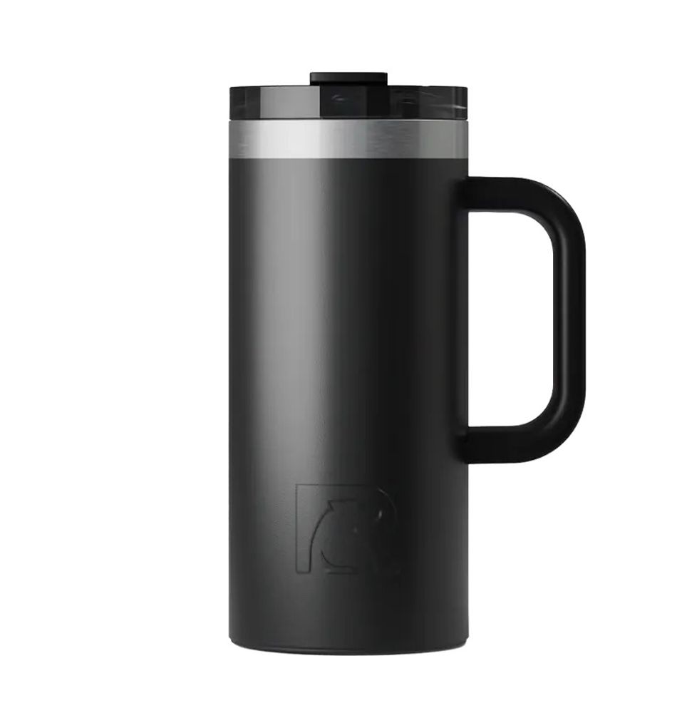 Combining the smooth taste of ceramic and durable stainless steel body, the RTIC Road Trip Travel Mug is perfect for caffeination on-the-go. The double-wall vacuum insulated stainless steel will keep drinks hot for 6 hours and cold 24 hours. Enjoy the pure taste of your favorite coffee, cold brews and teas with the ceramic-lined interior, providing a clean, non-metallic taste. The leak and spill-resistant lid uses dual threading, allowing for left or right handed drinking. Easily carry it with you everywhere with the large comfortable handle, take it with you in the car with the cupholder friendly base and quietly set it down with the built-in silicone coaster.